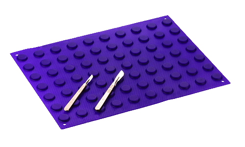 The Purple Surgical Puncture-Proof Pad is a unique, rigid plastic, puncture-proof pad for the simple, safe organization, counting, and disposal of contaminated sutures, blades, and needles.