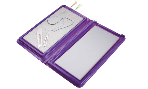 The Purple Surgical Sharps Pad is a simple, low-cost cardboard-backed foam pad that offers the minimum requirement for the organization, including counting and disposal of contaminated sutures, blades, and needles.